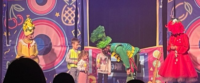 Był to piękny interaktywny witaminowy koncert dla dzieci . Widzowie wzięli udział w show, które zorganizują dla nich warzywa i owoce . Spektakl zainspirowany wierszem Brzechwy personalizuje warzywa i owoce, które borykają się z tematami bliskimi współczesnym dzieciom . Spektakl porusza tematy prawidłowego odżywiania oraz właściwych codziennych nawyków ekologicznych . Dużo śpiewu , fajnych instrumentów…