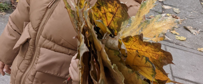 Lubimy chodzić na spacery i wycieczki . Ostatnie wyjścia mają na celu obserwacje jesieni i zbieranie jej darów. Kasztany, żołędzie i liście mają piękne kolory i wykorzystywane są do prac plastycznych