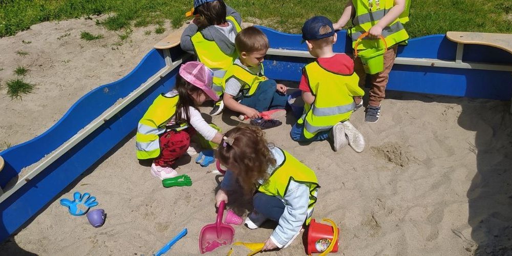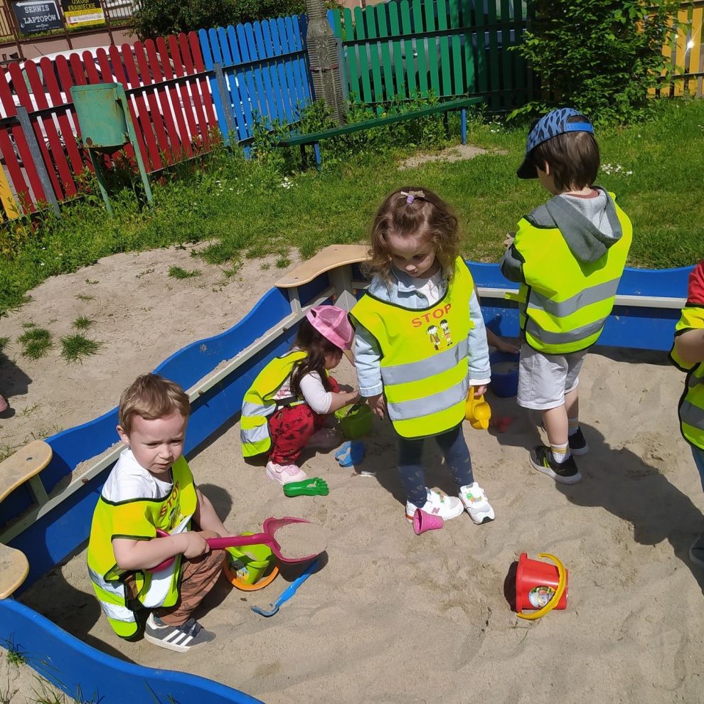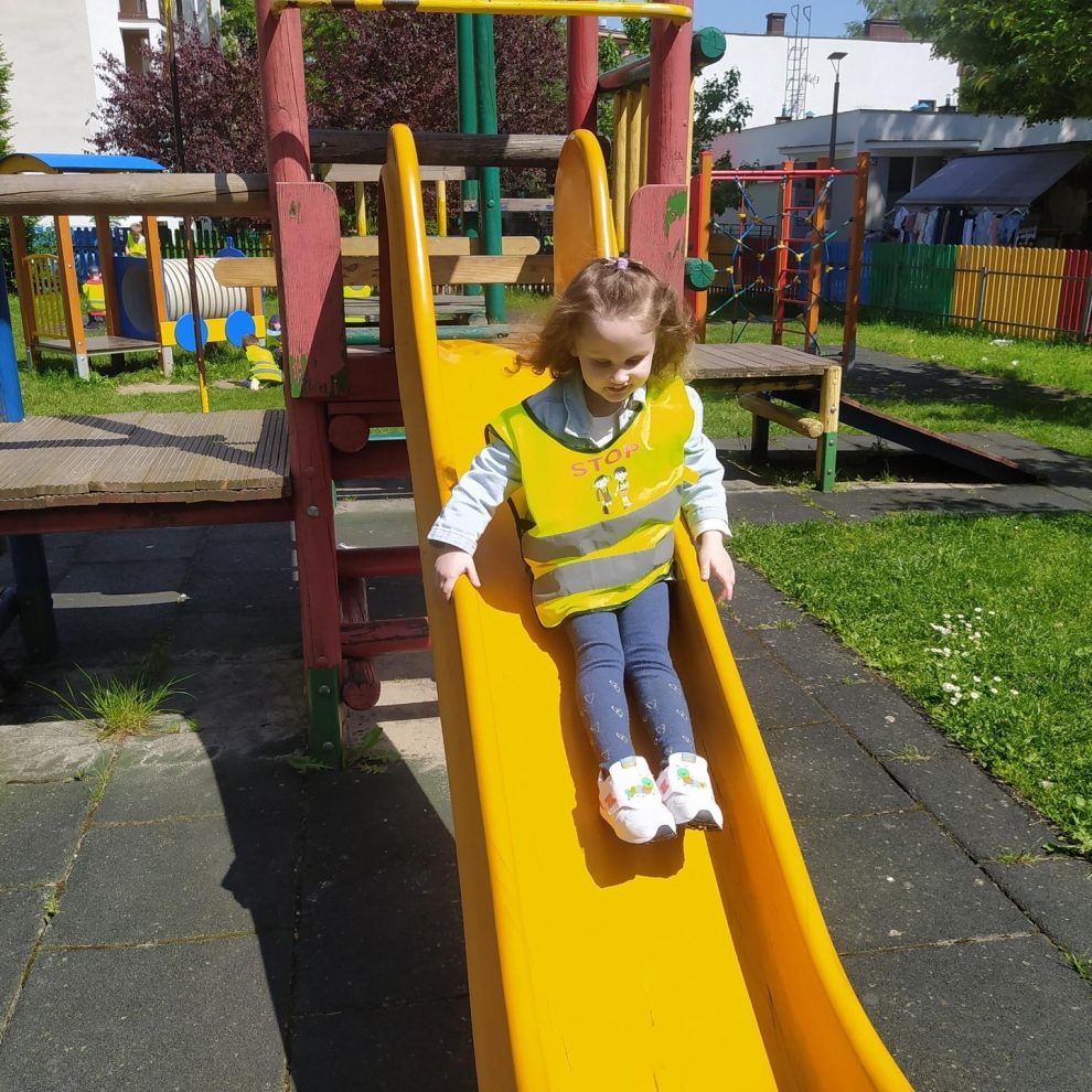 Mamy do dyspozycji okoliczne dwa parki oraz położone obok przedszkola dwa płace zabaw. Czasami wybieramy się także w ramach spaceru do pobliskiej biblioteki publicznej .