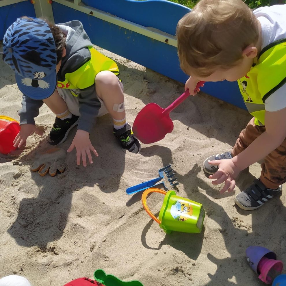 Maluchy uwielbiają zabawy na huśtawkach i w piaskownicy. Często gramy w ruchowe gry zespołowe. Każdy dzień to oprócz zajęć dużo ruchu i sportu.
