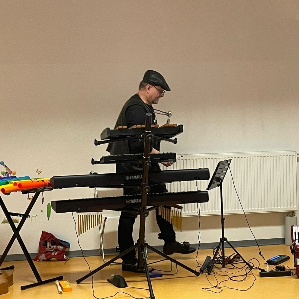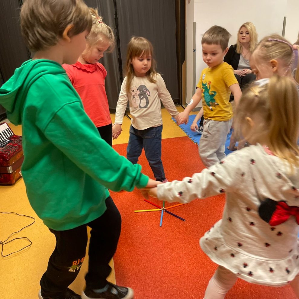W dniu dzisiejszym wzięliśmy udział w audycji muzycznej „ Człowiek orkiestra w przedszkolu” prowadzonej przez wielokrotnego laureata wielu nagród Ministerstwa Kultury i Dziedzictwa Narodowego Pana Wiesława Pyżalskiego . Pan Wiesław zaprezentował naszym dzieciom aż siedem prawie nieznanych instrumentów . Były śpiewy , elementy rytmiki oraz elementy edukacyjne uczące właściwego zachowania w przedszkolu , zapoznania dzieci z kolorami podstawowymi oraz pochodnymi , a także zasadami higieny. Nasze maluchy poznały dźwięki gamy oraz wartości nut. Chętnie brały aktywnie udział . Audycja pobudzała do aktywności muzycznej, pokazała możliwości interpretacyjno – wykonawcze w trakcie gry na wielu instrumentach jednocześnie .
