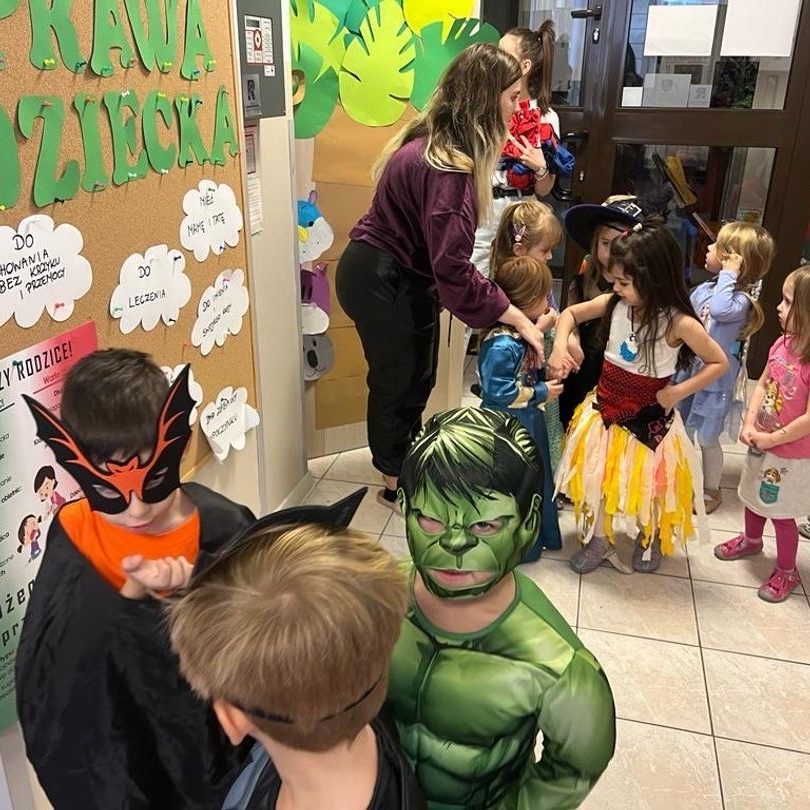 Nie zabrakło wróżek, księżniczek, dyniowych stworków, batmanów, rycerzy , nietoperzy, smoków, smerfów, piratów, strażaków i innych . Były tańce , śpiewy, konkursy.