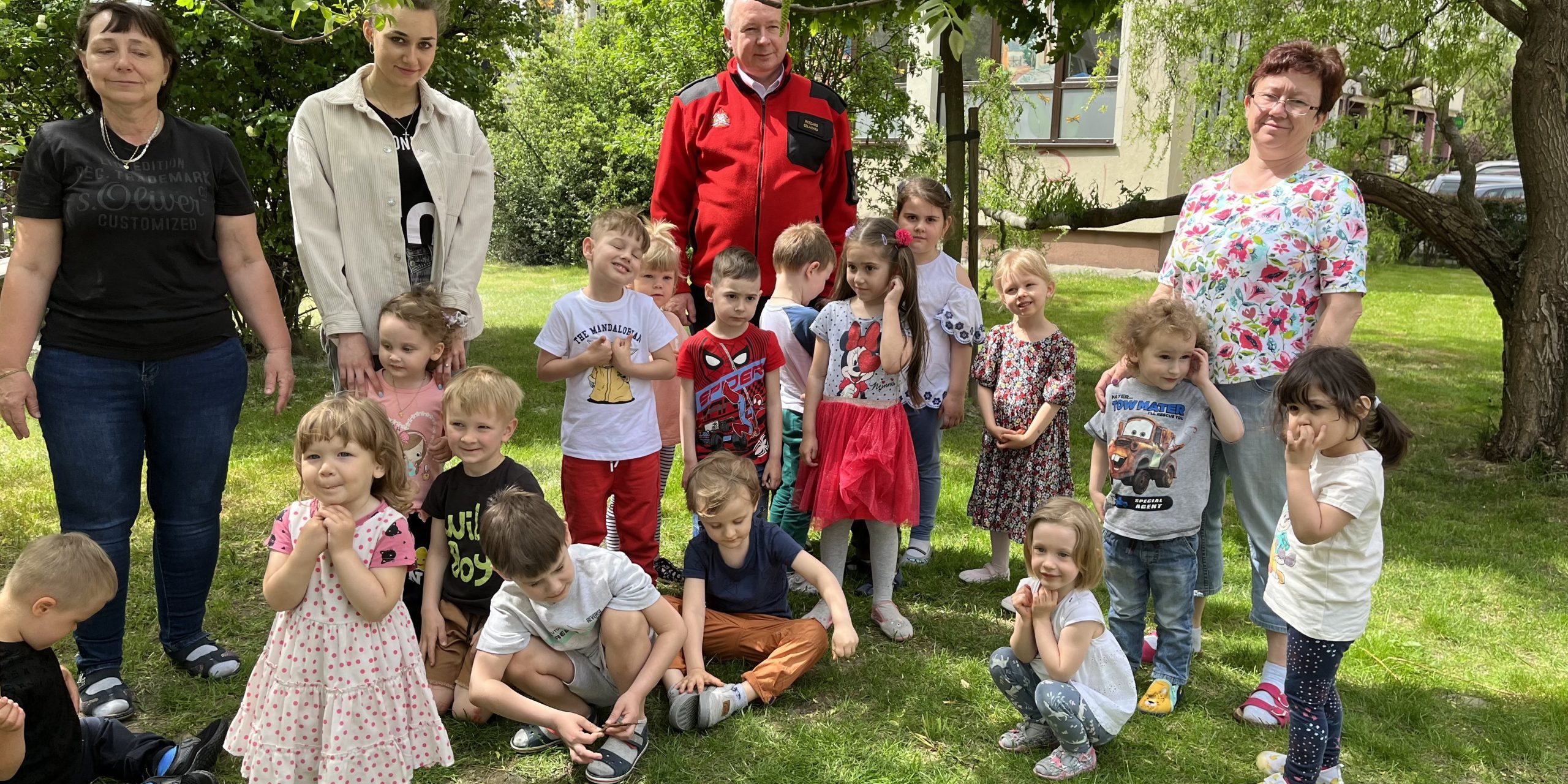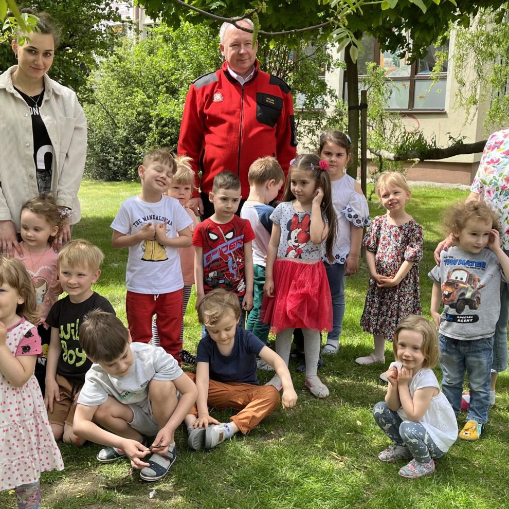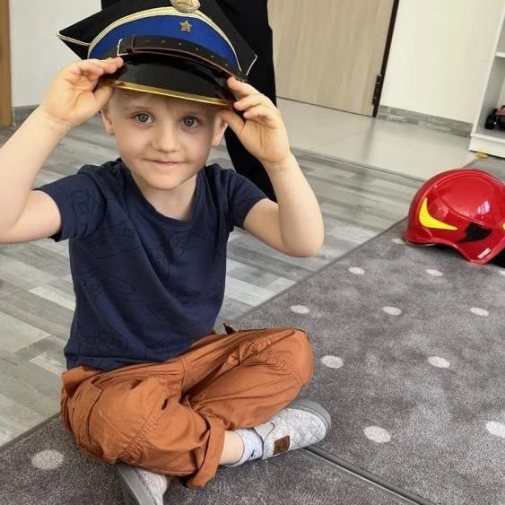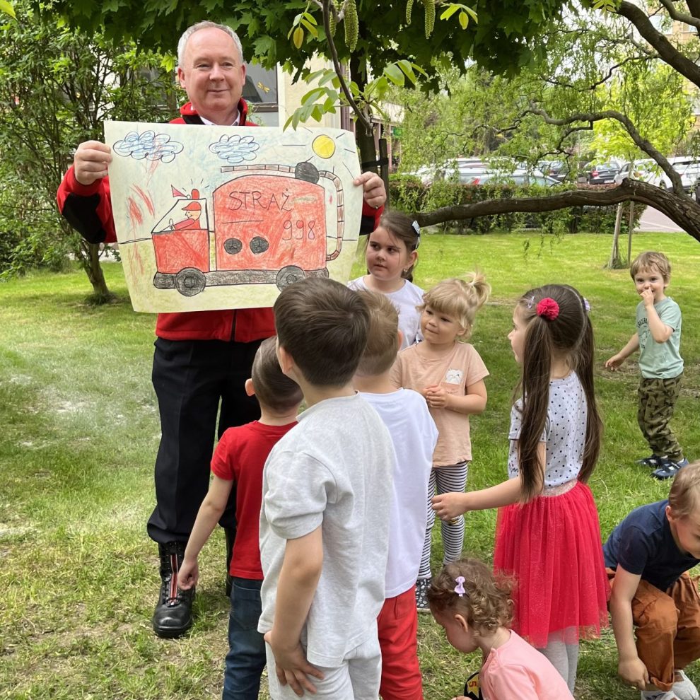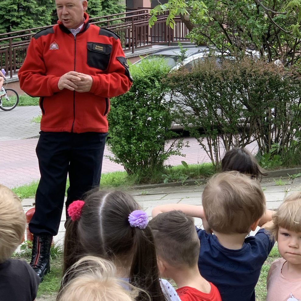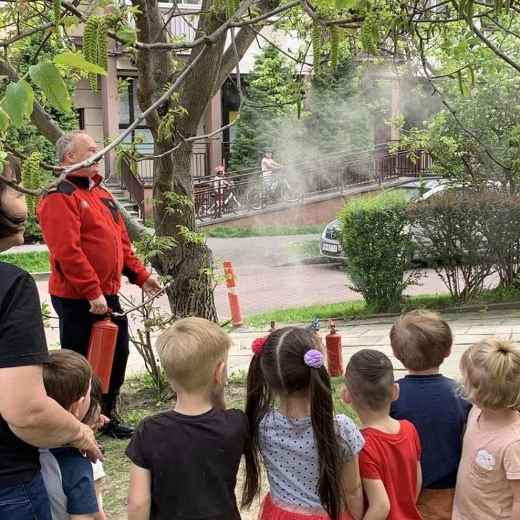 Dzieci uczyły się rozumieć istotę pracy strażaka, poznawały numery telefonów alarmowych. Strażak tłumaczył jak należy zachować się na wypadek pożaru. Dużą atrakcja było przymierzanie kasku strażackiego. Pan pokazał naszym dzieciom jak należy korzystać z gaśnicy na zewnątrz. Dużo śmiechu i zaspokojonej ciekawości.
