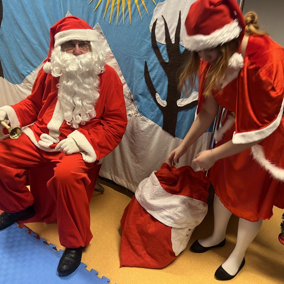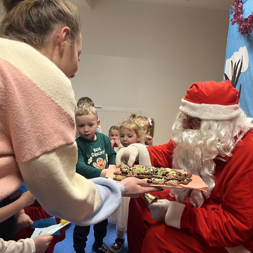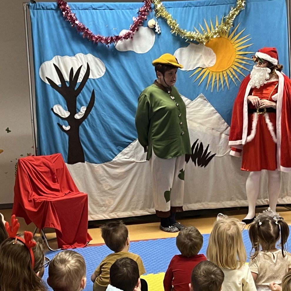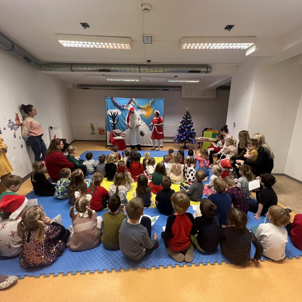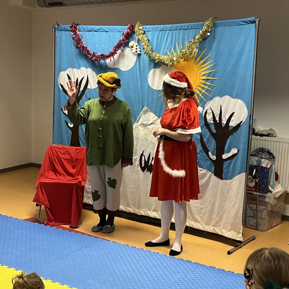 Dziś w Ważce świętowaliśmy dzień Świętego Mikołaja . Na tę uroczystość zaprosiliśmy ulubiony przez nasze dzieci Teatr Elefant z przedstawieniem „Prezent dla Św.Mikołaja”. Bajka była interaktywna. Dzieci brały udział w przedstawieniu, współtworzyły choreografię do piosenek, odpowiadały na pytania zdawane przez aktorów . Wszystkie maluchy były bardzo zaangażowane i mocno przeżywały swoje role. W bajce brało udział 3 aktorów, którzy wcielili się w pięć postaci . Spektakl miał bogatą dekorację, kolorowe kostiumy i piosenki związane okresem bożonarodzeniowym. Po przedstawieniu Św. Mikołaj wręczył każdemu dziecku prezent. Dzieci z kolei przygotowały piękny program artystyczny dla Mikołaja w podziękowaniu za prezenty i przyjazd . W Ważce ,jak zwykle w Święta , uroczyście, wesoło i kolorowo .
