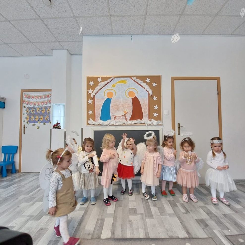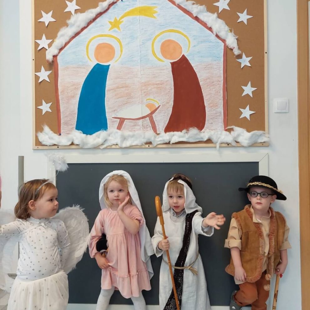 gru212022Wydarzenia Dziś w naszym przedszkolu długo wyczekiwane kolędowanie. Dzieci w pięknych strojach Aniołków, pastuszków, Św.Józefa oraz Marii przepięknie śpiewały kolędy i inne piosenki świąteczne. Tradycja świąteczna w Ważce podtrzymywana „