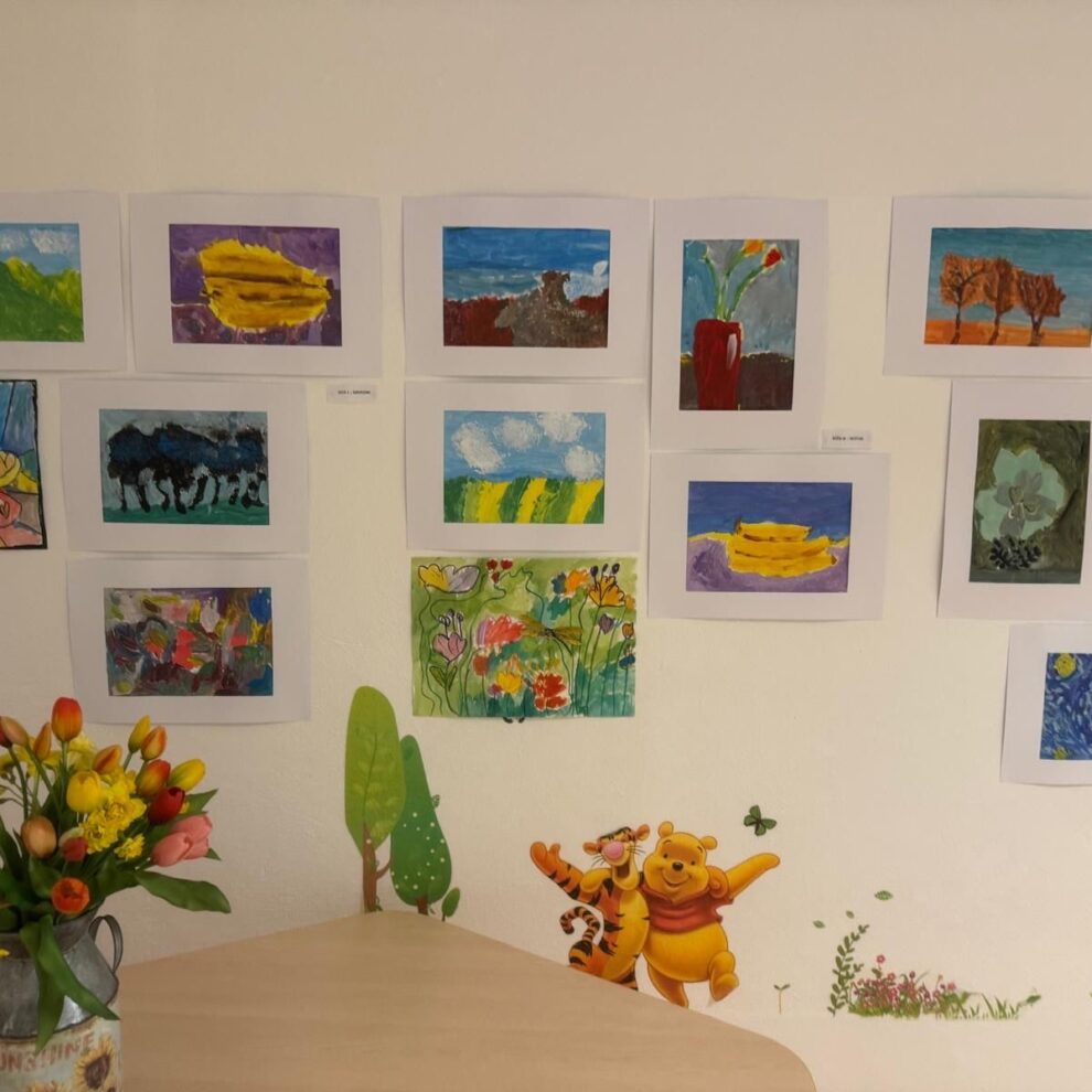 Dziś o godzinie 17.00 odbył się w naszym przedszkolu o profilu artystyczno językowym wernisaż prac plastycznych młodych artystów z Ważki .