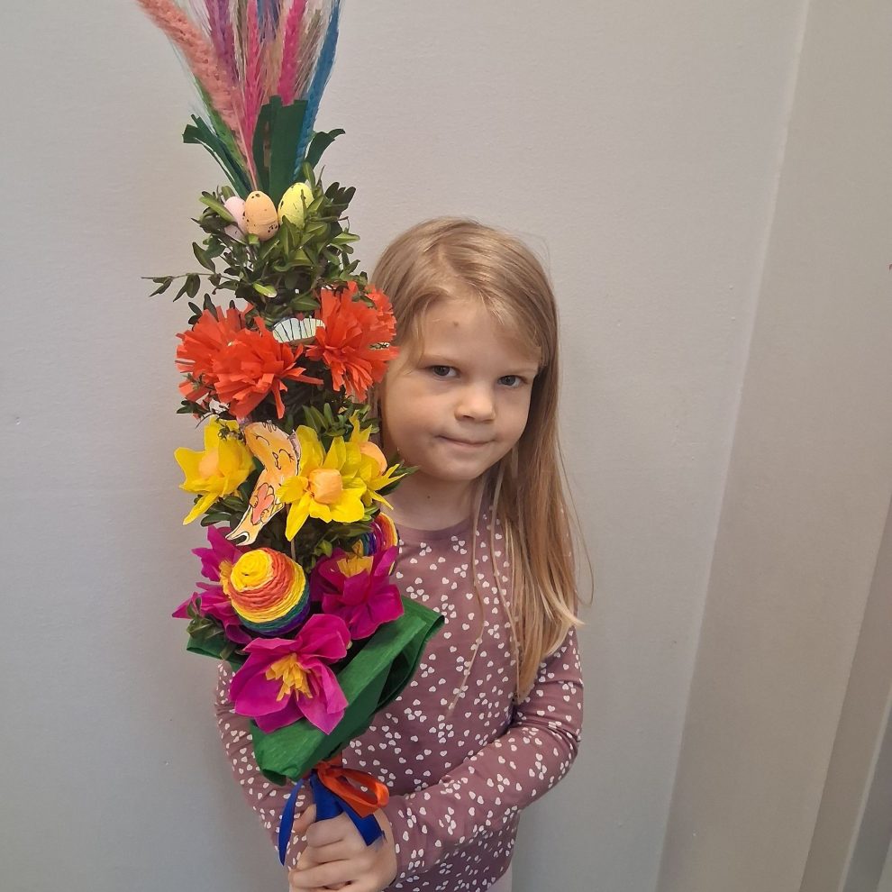 kwi162025Wydarzenia Jak co roku wyzwanie na stworzenie pięknej palmy wielkanocnej podejmują prawie wszystkie dzieci. Komisja ma duży problem z wyborem najpiękniejszej ,więc wszystkie dzieła docenione są nagrodami w formie książeczek oraz dyplomami .