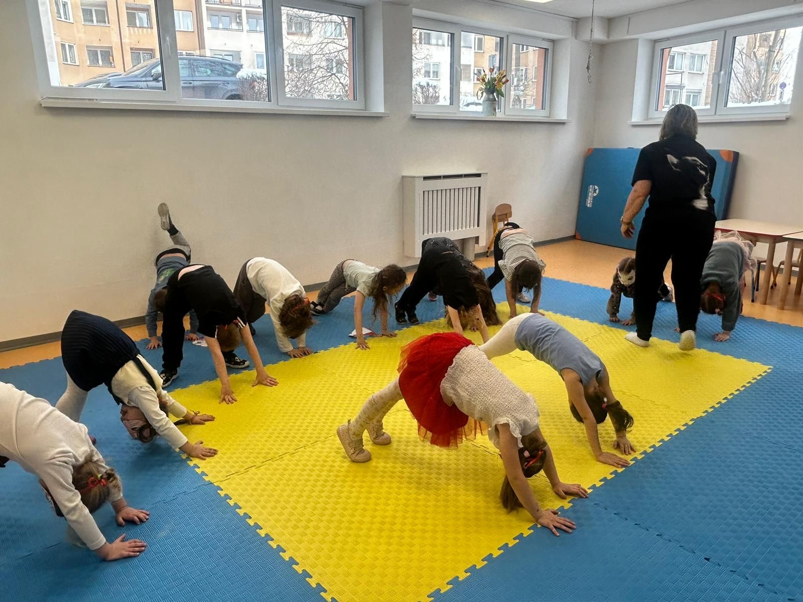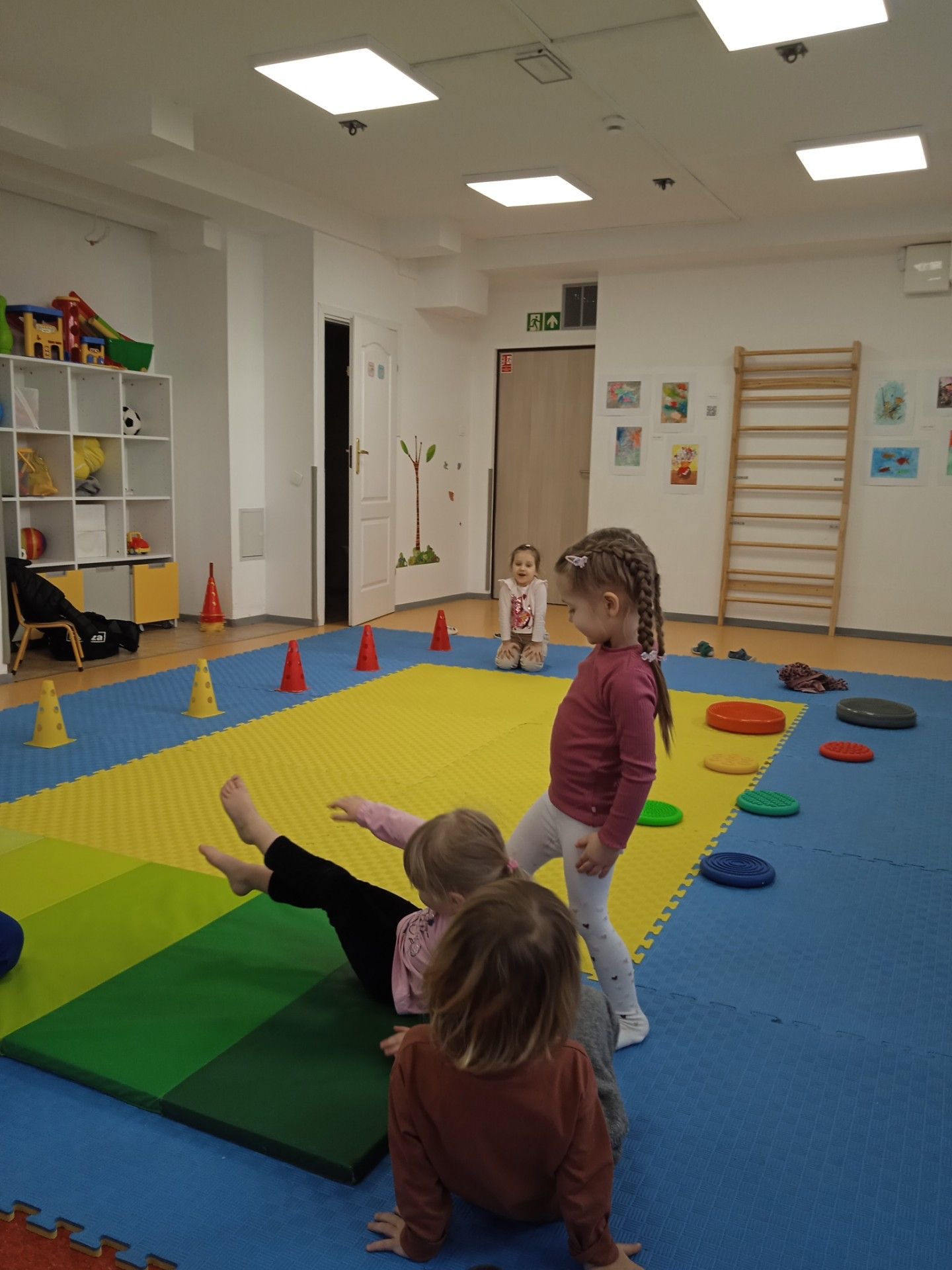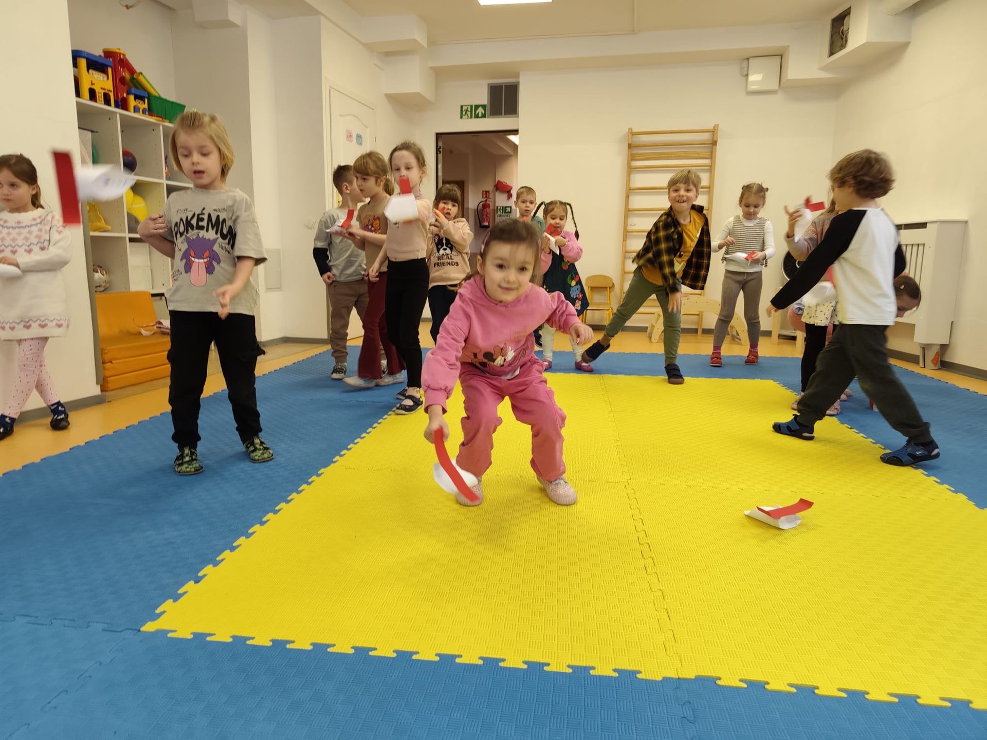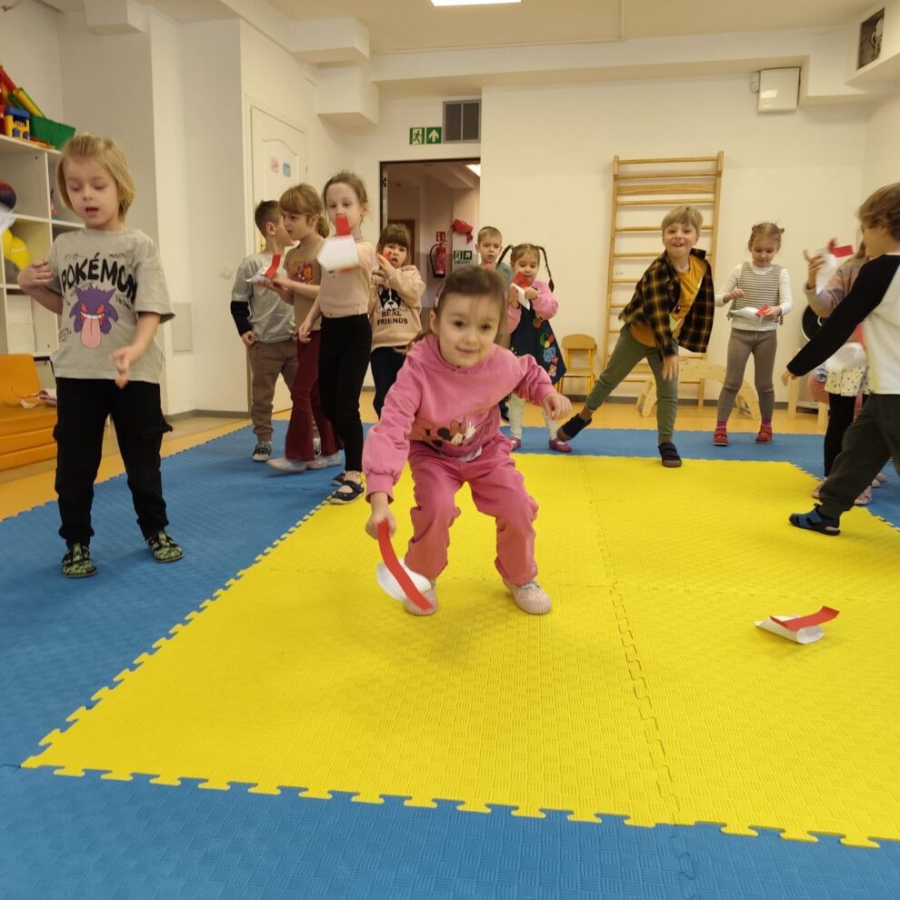 Posiadanie tak dużej sali gimnastycznej w przedszkolu ma wiele zalet . Gościmy tam odwiedzające nas teatry, gramy w kręgle, organizujemy zabawy ruchowe, wernisaże , zajęcia z judo lub z baletu i wiele innych aktywności.
