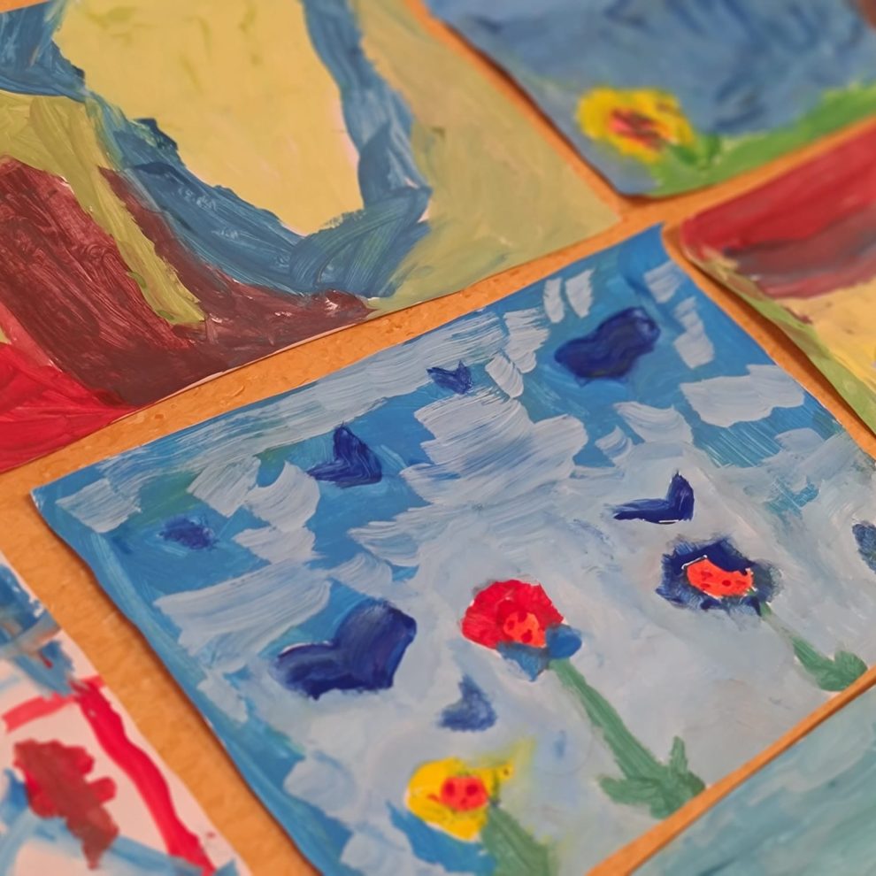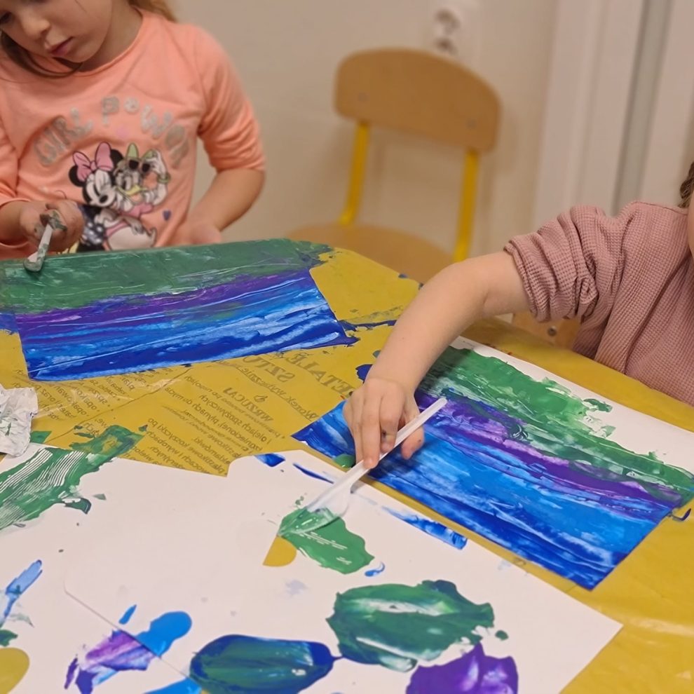 kwi82025Wydarzenia Na dzisiejszych zajęciach pracowaliśmy w technice mieszanej . Uczyliśmy się pojęć tekstura, kształt , kompozycja i warstwa .