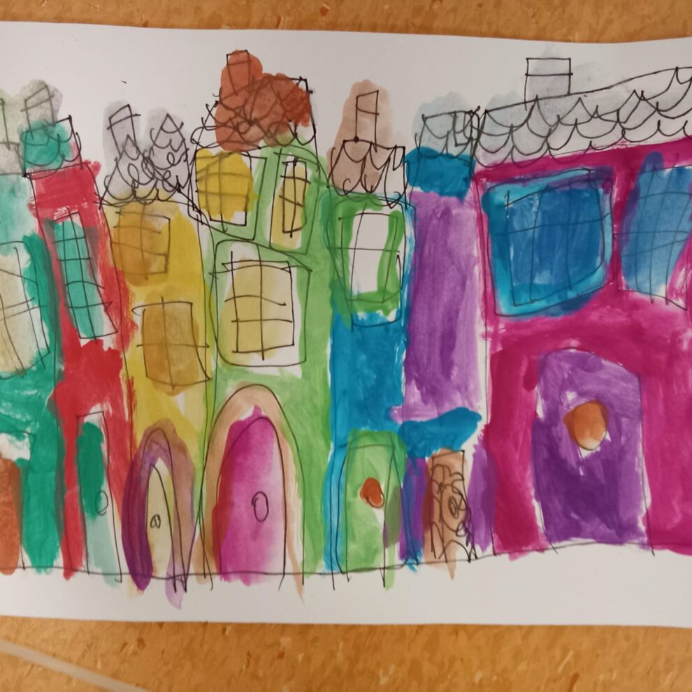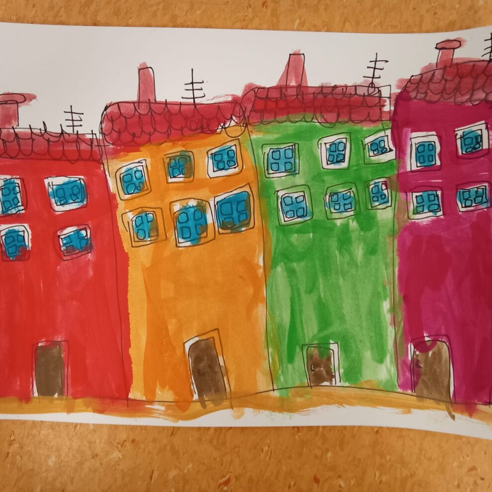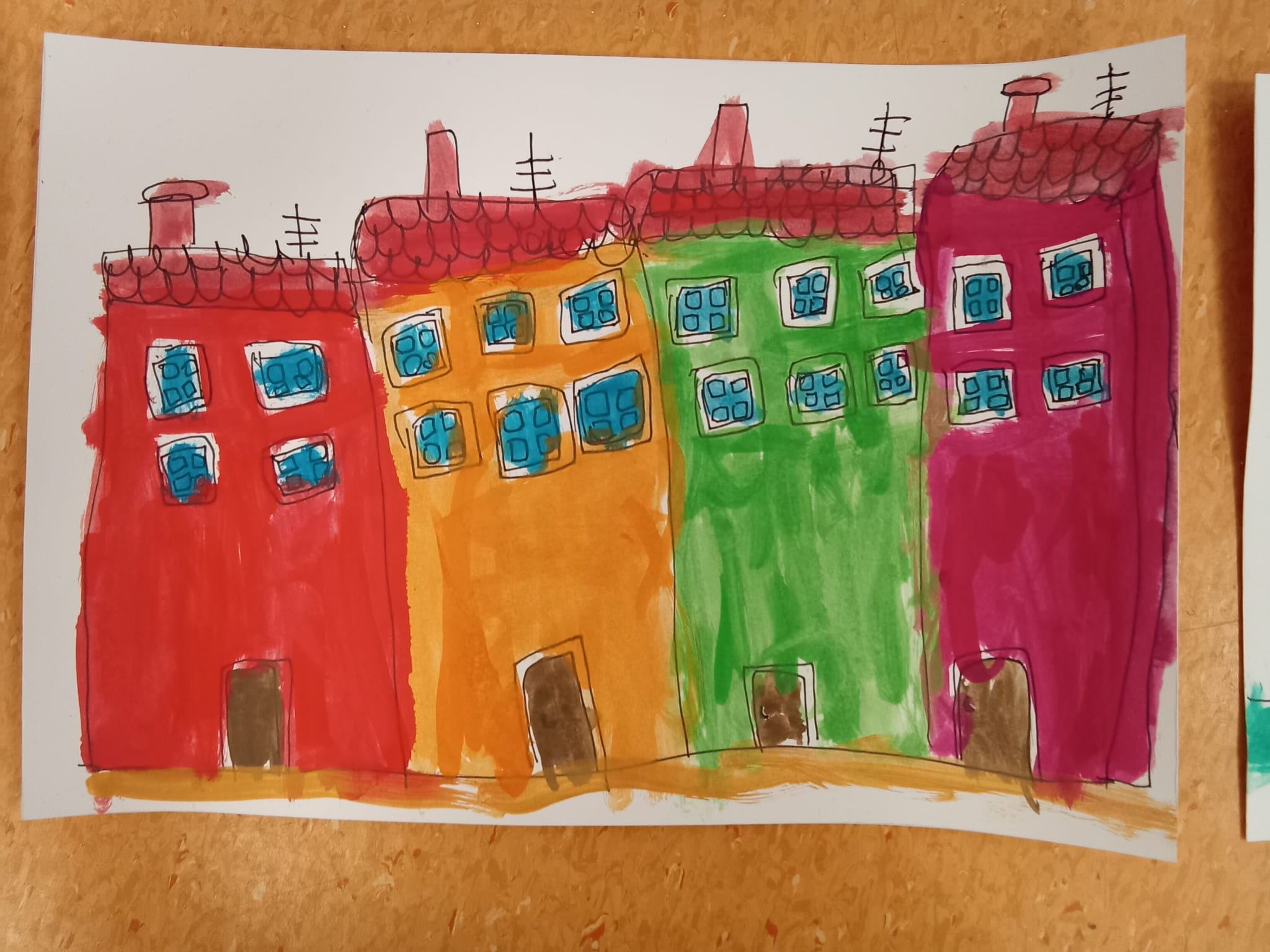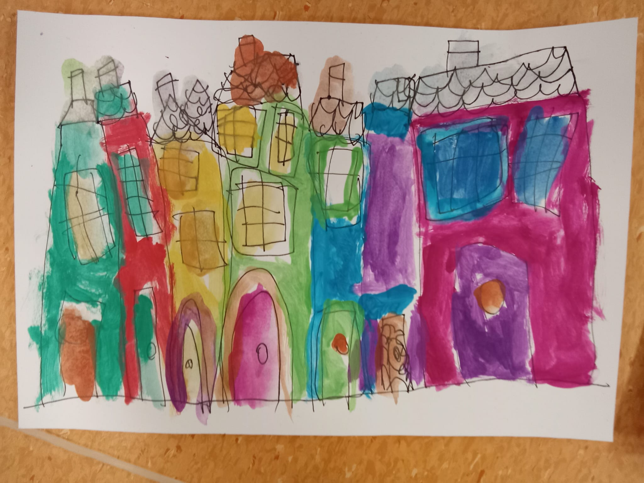Przedszkole Ważka jest przedszkolem artystycznym im. Józefa Mehoffera i równocześnie miejscem gdzie dużo się dzieje i tworzy. Zajęcia plastyczne prowadzone są na wysokim poziomie . Dzieci starsze pracowały w tym tygodniu nad linią , konturem i plamą wykonując pracę ilustracyjne inspirowane kolorowymi kamieniczkami . Pracowaliśmy cienkopisem i akwarelą. Dzieci młodsze pracowały z pojęciami kształtu, faktury i plamy wykonując wielowarstwowe prace przy użyciu tempery, pędzla, wałka i papierowej chusteczki .