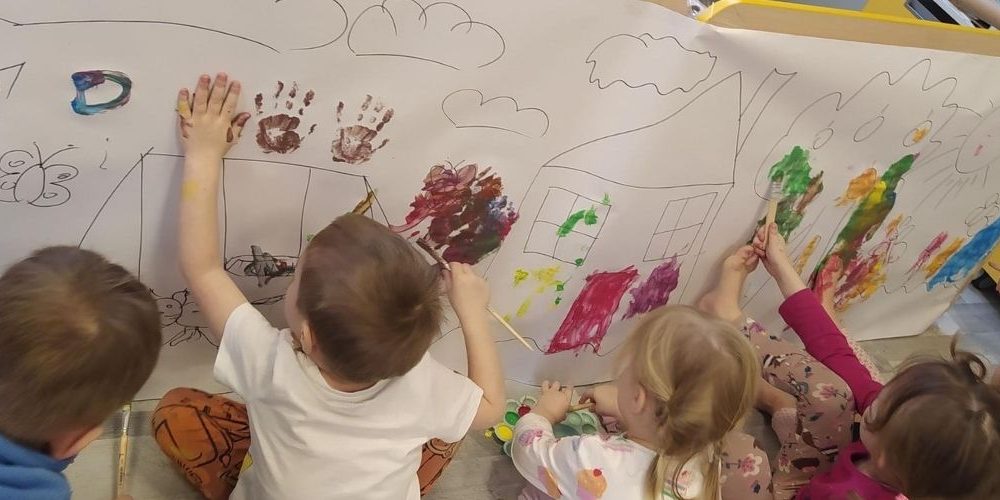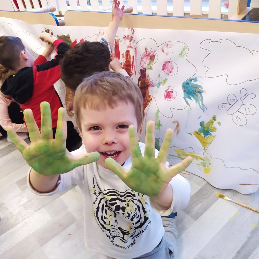 mar282023Wydarzenia Nasze Przedszkolaki to prawdziwi artyści! Pędzel i farby- to coś co uwielbia każde dziecko . A zadanie było nieco utrudnione, ponieważ pędzle zamiast w dłoni wylądowały w stopie! Uwielbiamy podziwiać jak pięknie radzą sobie dzieci.