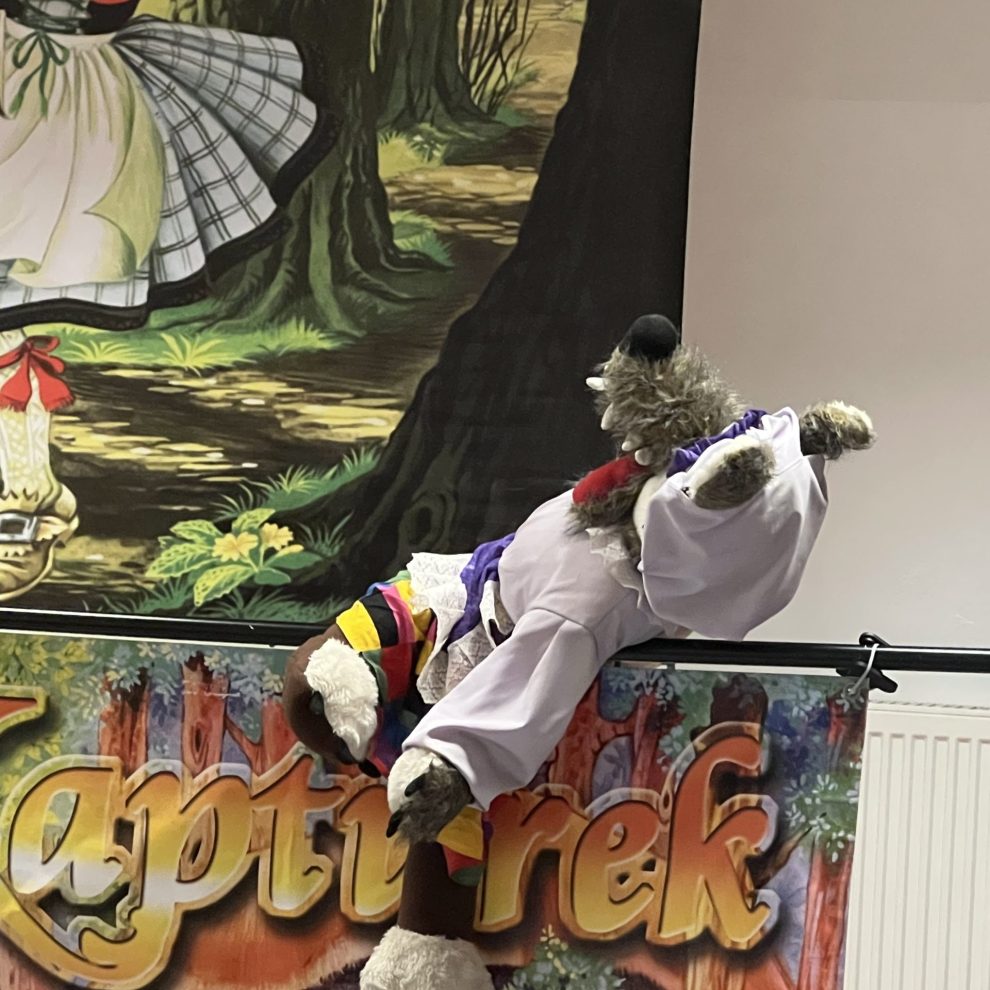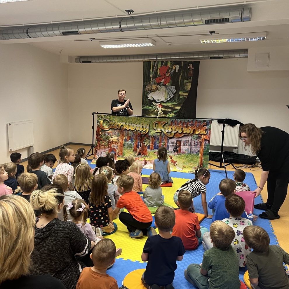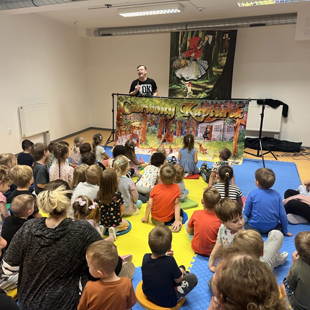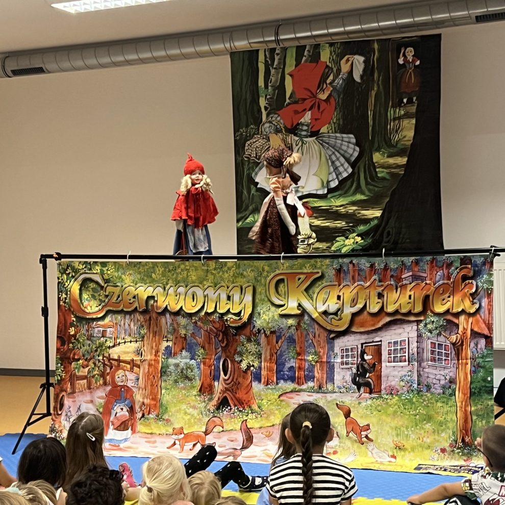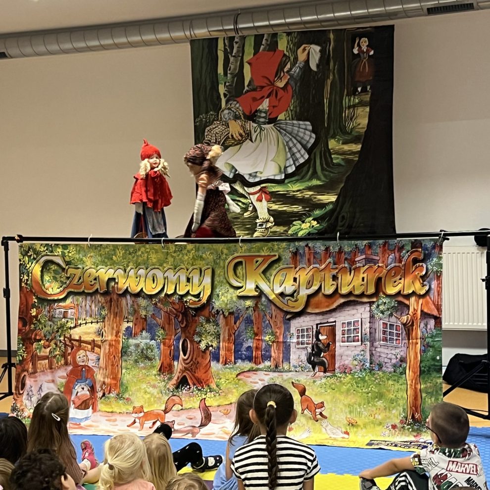 Dziś odbyło się w naszym przedszkolu przedszkolu przedstawienie Teatru Kukiełek „O CZERWONYM KAPTURKU”. Teatr działa w oparciu o ręcznie wykonane kukiełki wraz z piękną scenerią. Wydawałoby się, że bajka o Czerwonym Kapturku została już wyeksploatowana do granic możliwości, a jednak ujęcie tej historii w teatrzyku kukiełkowym wnosi miły powiew świeżości. Cała historyjka została tu bowiem opowiedziana za pomocą obrazu (kukiełki, oraz scenografia) i dźwięku (profesjonalny podkład muzyczny). Wszystko to utrzymane w ciekawej estetyce i podlane sporą porcją dobrego humoru. Świetny pomysł i jeszcze lepsze wykonanie. Integralną częścią tego wydarzenia były pamiątkowe fotografie , które zakupione będą mogły być przez chętnych rodziców. Po wakacjach w Ważce znowu głośno i radośnie .