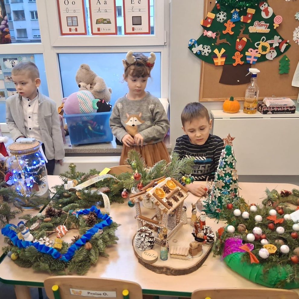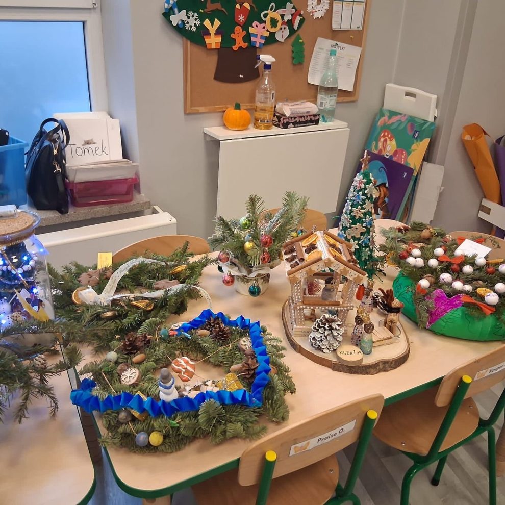 Zarówno nasze dzieci, jak i rodzice bardzo poważnie potraktowali konkurs na najpiękniejszy stroik świąteczny . W tym roku dopuszczona została pomoc rodziców. W ten sposób zachęcamy także rodziców do wspólnej aktywności z maluchami . Komisja rozstrzygająca miała poważny problem w wyłonieniem najpiękniejszych prac . Ostatecznie w każdej z trzech grup wiekowych przyznano i nagrodzono po trzy miejsca . Reszta biorących udział wyróżniona została dyplomami.