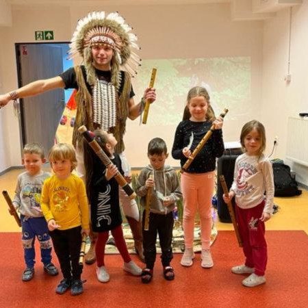 Dzisiejszy dzień w naszym przedszkolu obfitował w wiele atrakcji. Bardzo często zapraszamy do nas aktorów różnych teatrów dla dzieci i młodzieży. Początkowo było to ,przez trudny epidemiczny czas, koniecznością ,aby przedstawienia odbywały się na terenie naszego przedszkola, a teraz stało się naszą codziennością. Maluchy żywiołowo witają każde przedstawienie teatralne i wyraźnie widać, że bardzo lubią tę formę sztuki. Dzisiejszy muzyczno-edukacyjny, indiański spektakl przyniósł nam wiele emocji i radości. Prawie każdy z nas w dzieciństwie pragnął zostać Indianinem. Dzieci zrozumiały co znaczy odwaga, prawda i prawość – przymioty każdego Indianina. Spektakl realizowany z barwną muzyką częściowo w formie teatru lalkowego. Była nauka, zabawa, wiele dowiedzieliśmy się o zwierzętach, ich zwyczajach, ekologii i klimacie. Spektakl rozwinął naszą wyobraźnię i empatię.