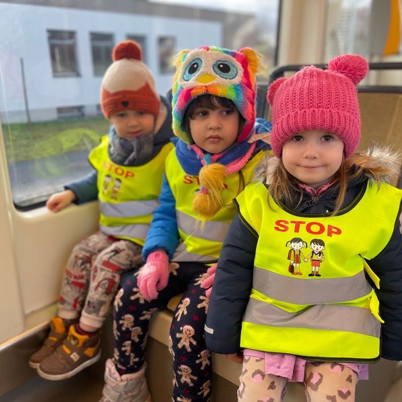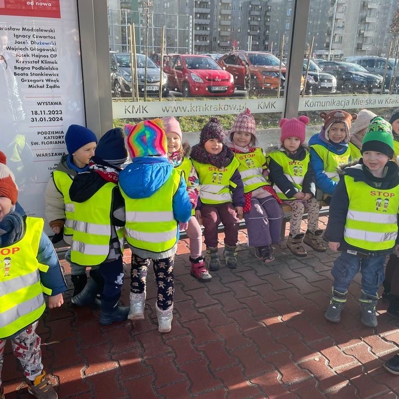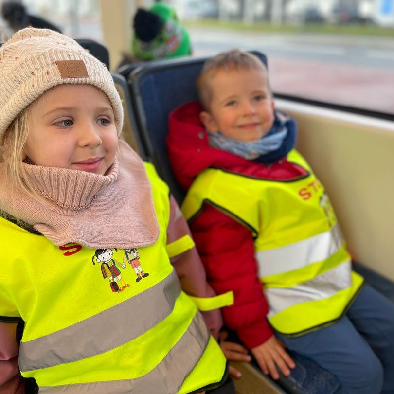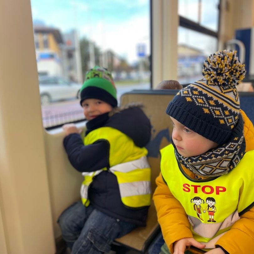 sty42024Wydarzenia Na wycieczki czasem jeździmy tramwajem To wielką atrakcja. Dla niektórych dzieci to ich pierwszy raz tym środkiem lokomocji . Łączymy przyjemne z pożytecznym przypominając sobie zasady bezpiecznego poruszania się po ulicy .