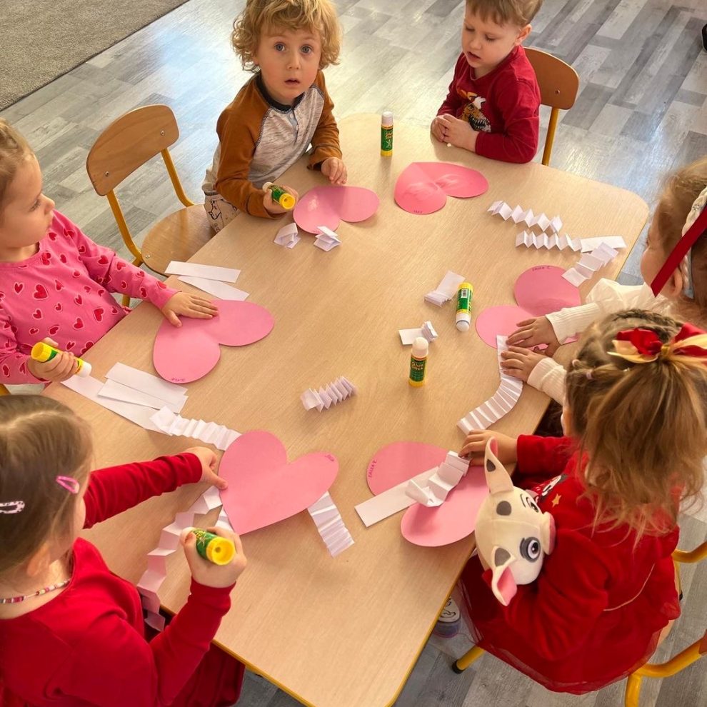 lut142024Wydarzenia Wszystkie grupy w naszym przedszkolu świętowały dziś Walentynki . Kleiliśmy, wycinaliśmy serca . Dużo rozmawialiśmy o miłości , przyjaźni i empatii. Nasze maluchy od najmłodszych lat uczone są życzliwości dla ludzi i świata.