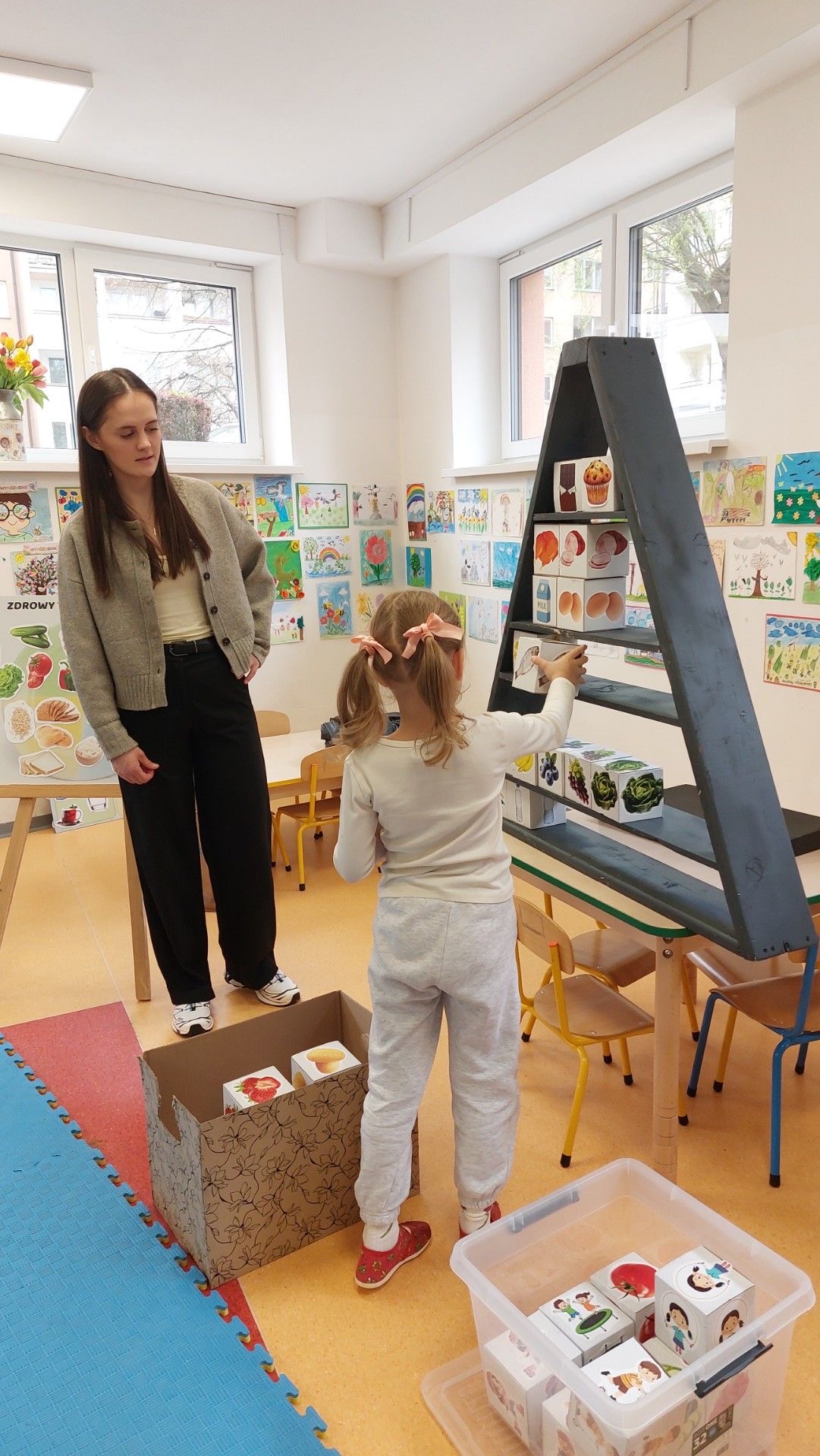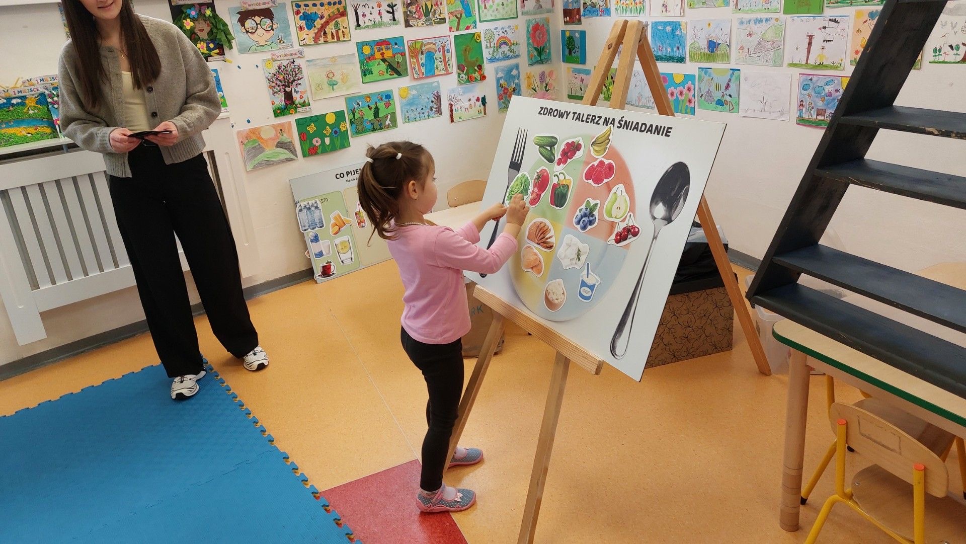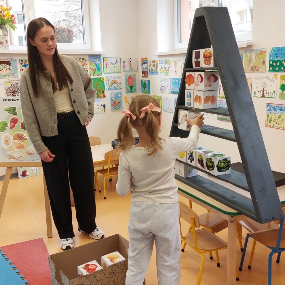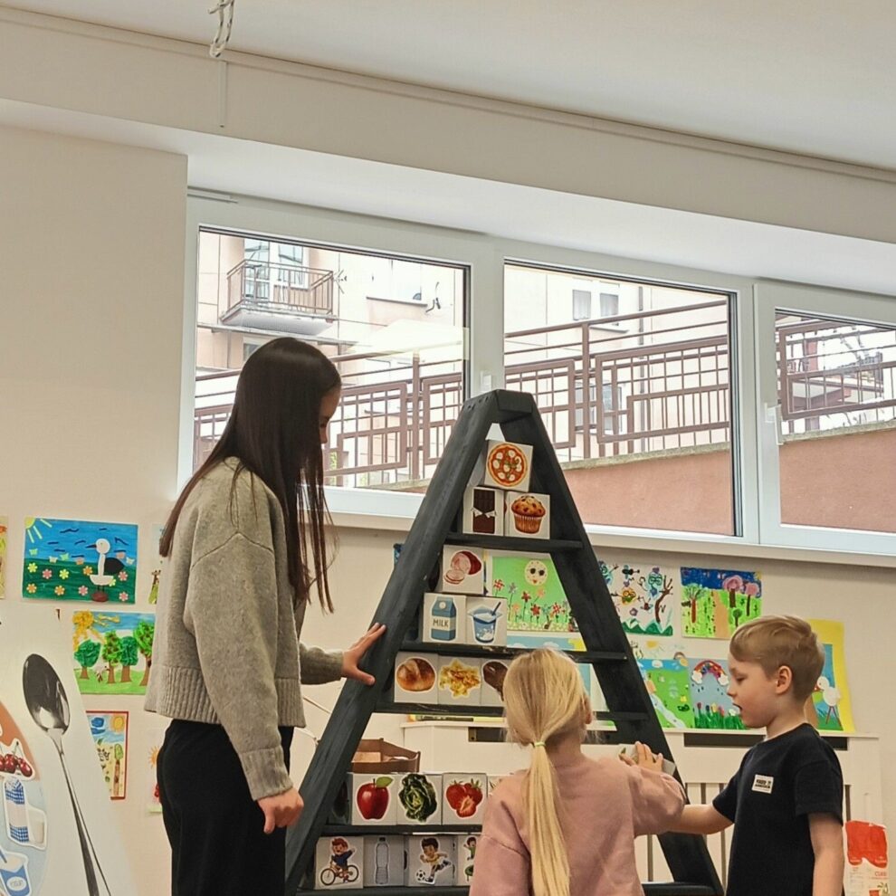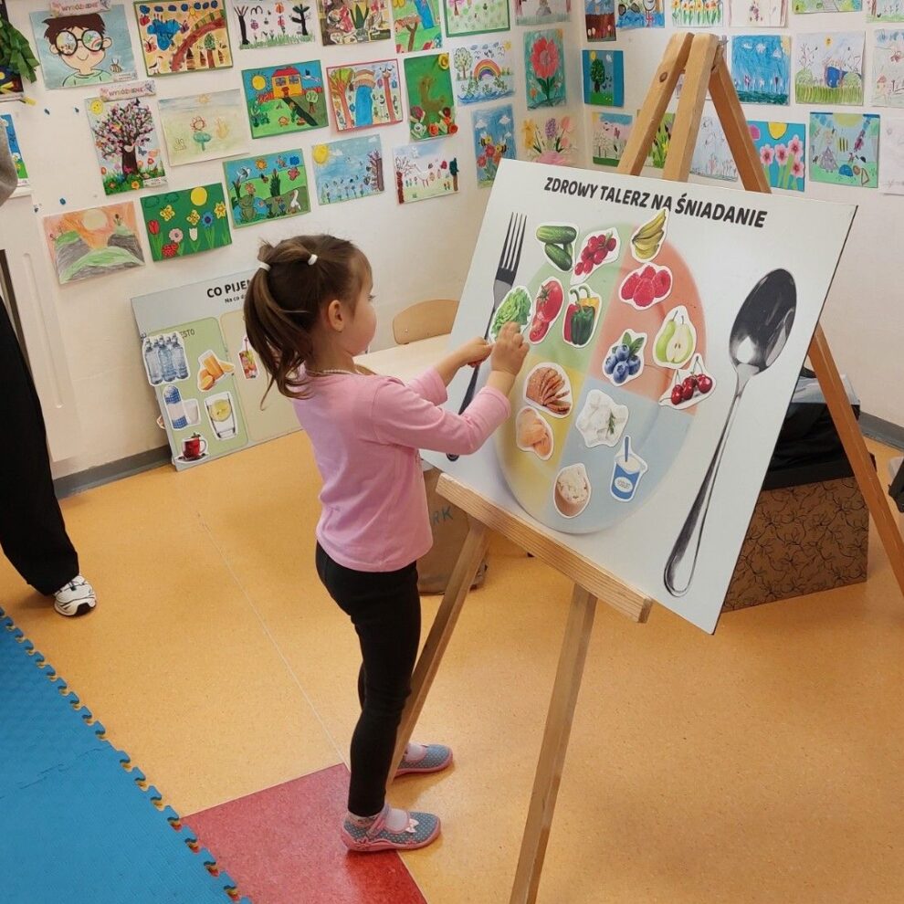 – pracowały z dużymi planszami edukacyjnymi (m.in. „często–czasem–rzadko”, zdrowy talerz)