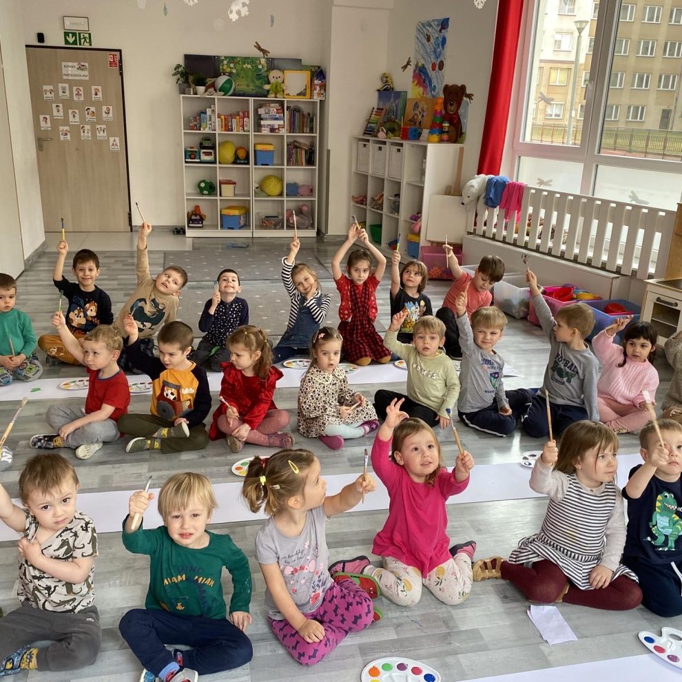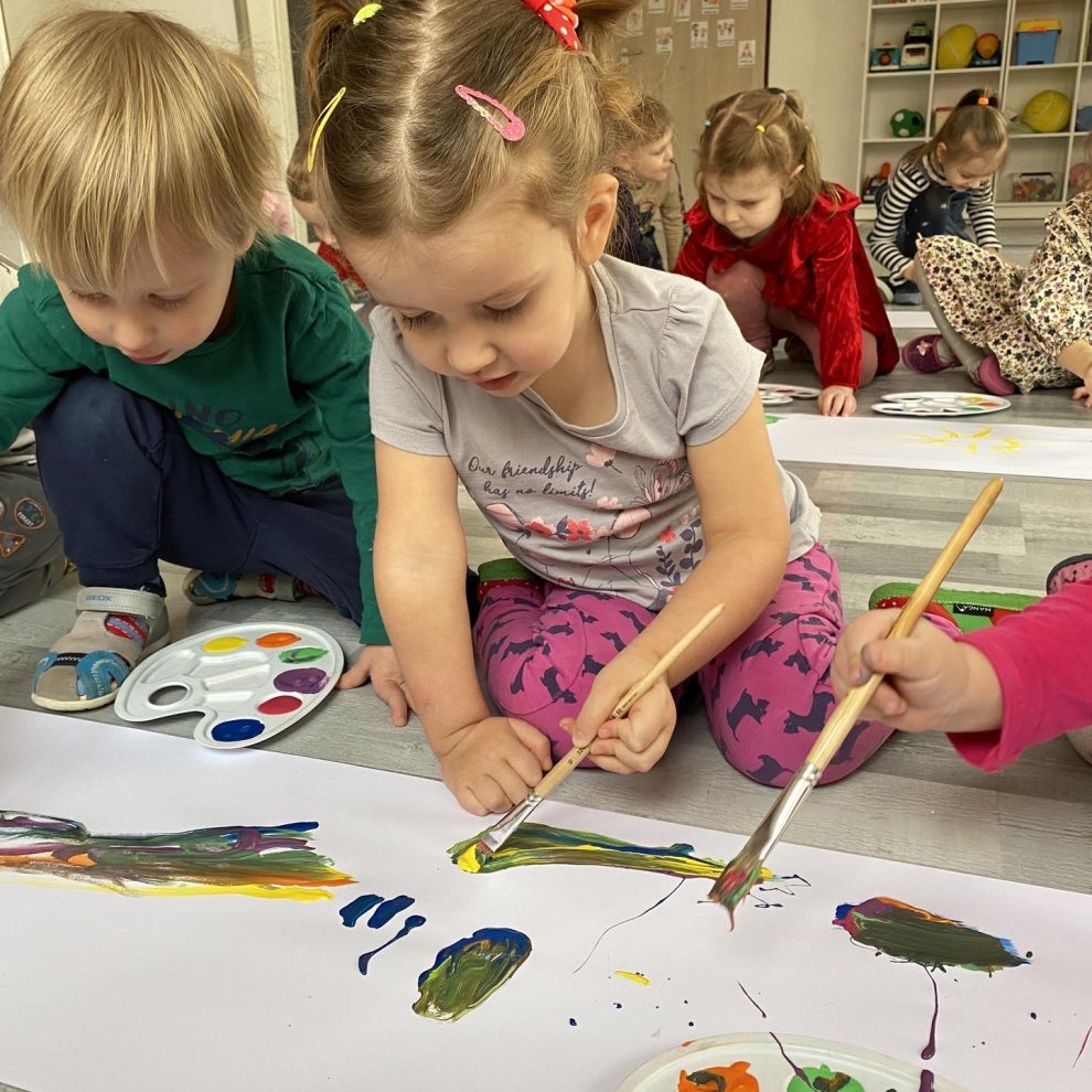 Dziś maluchy z grupy pszczółek tworzyły wspólną pracę. Radości było wiele .