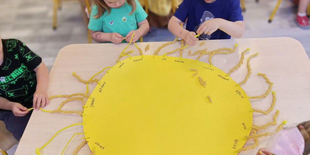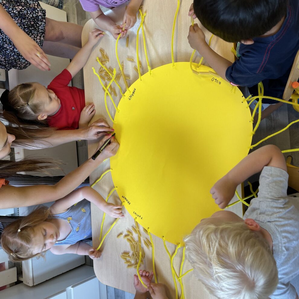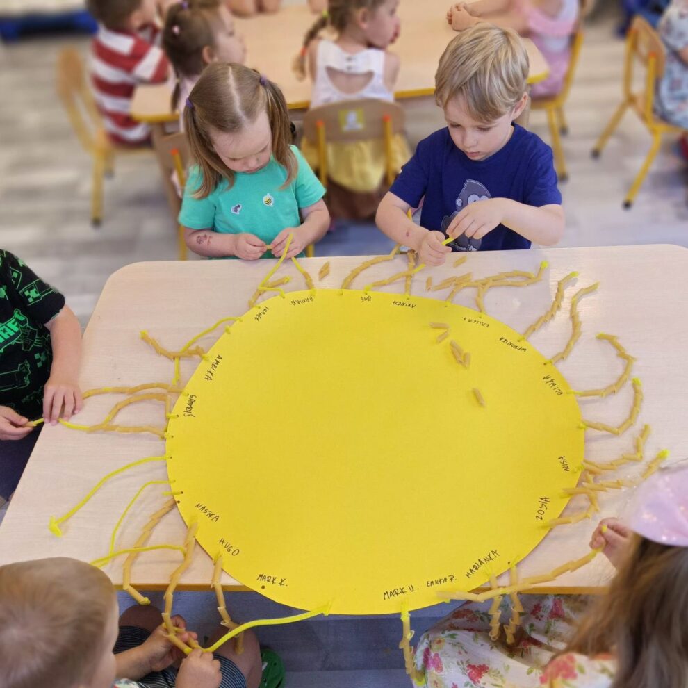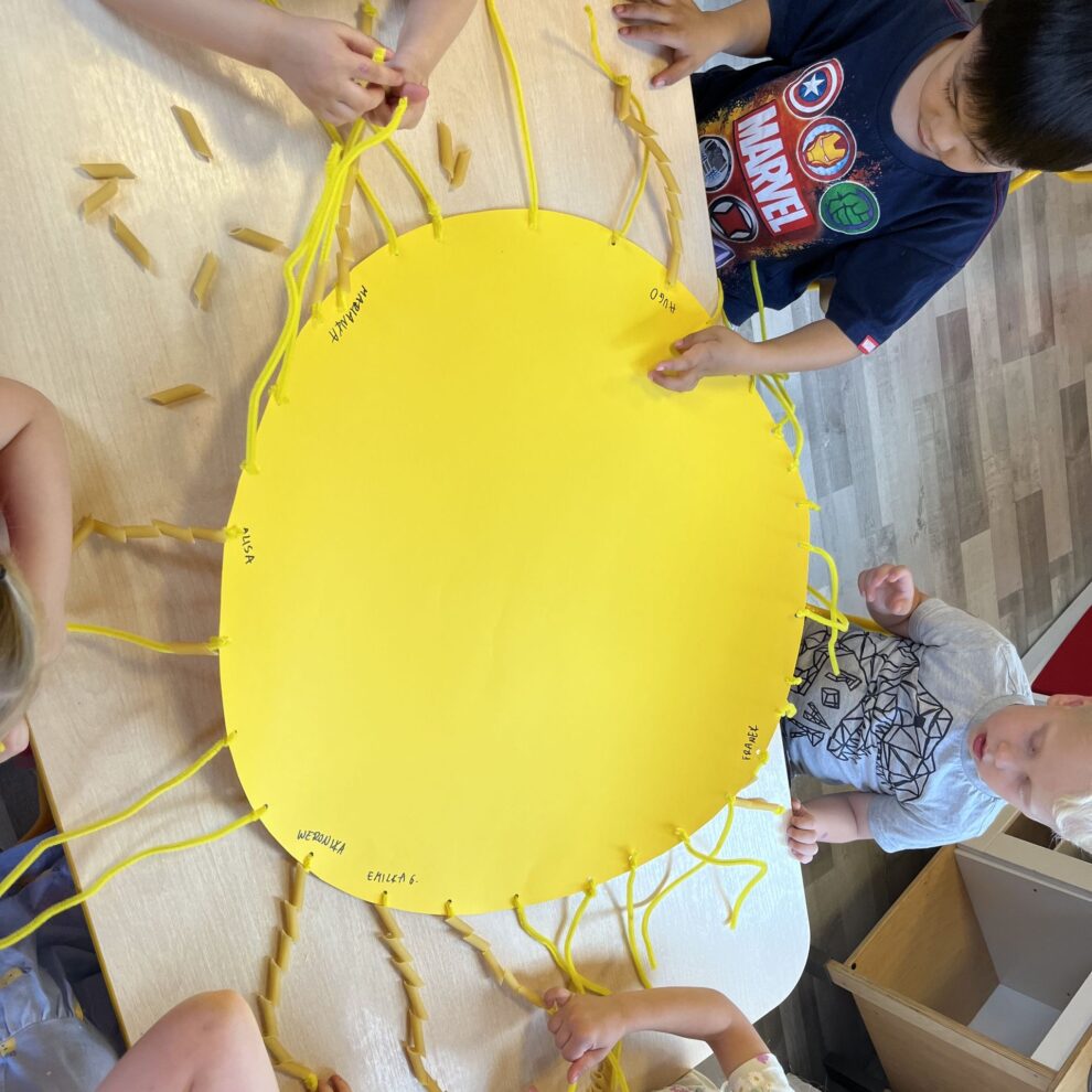 Witamy wakacje zrobieniem wielkiego słońca z makaronu.