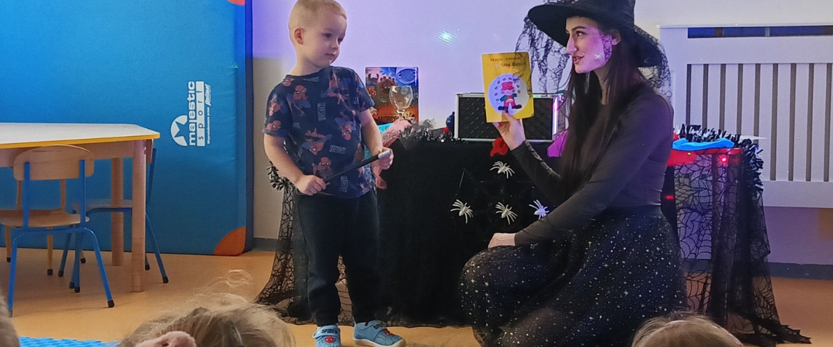 Dziś przyjechała do nas wróżka .Maluchy przyjęły ją bardzo serdecznie Wszyscy z zapartym tchem oglądali magiczne sztuczki .