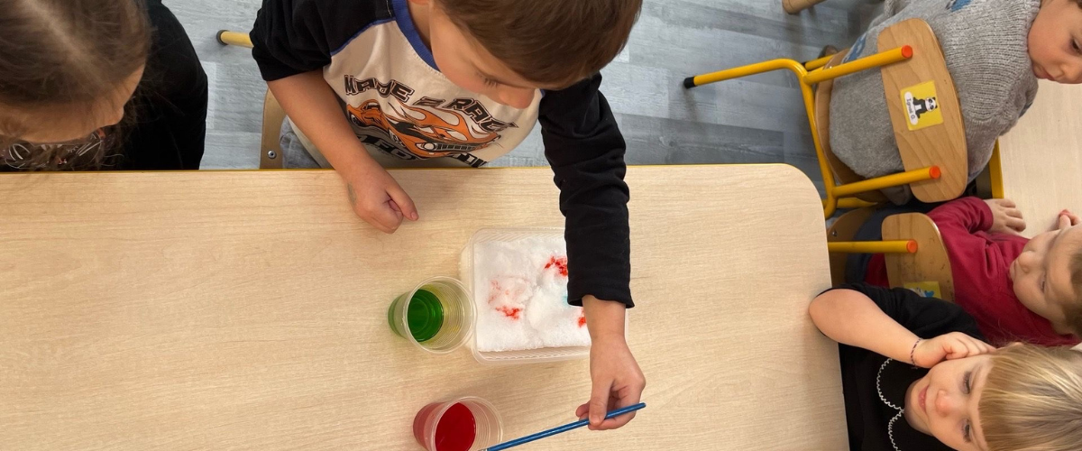 Po świętach i małej przerwie w zajęciach dzieci spragnione wspólnej zabawy bawią się w śniegu .