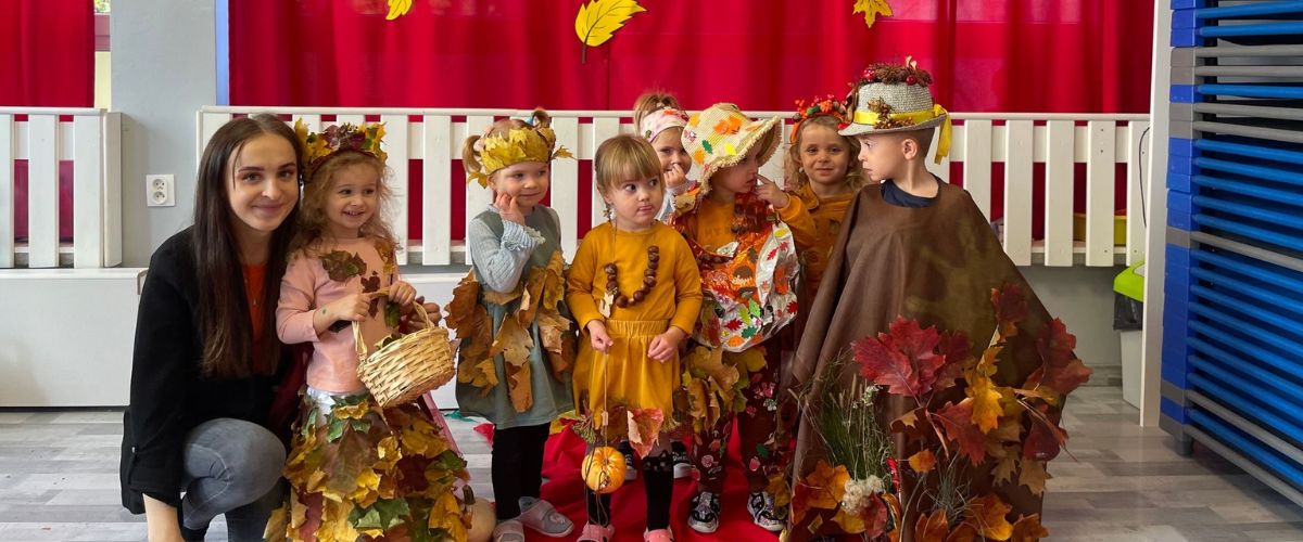 Nasze codzienne zajęcia odbywają się zgodnie z podstawą programową. Staramy się jednak o ich maksymalne urozmaicenie i rozwinięcie o nadprogramowe ciekawostki. Dzisiaj rozmawialiśmy i jesiennych strojach, zwyczajach i pogodzie .