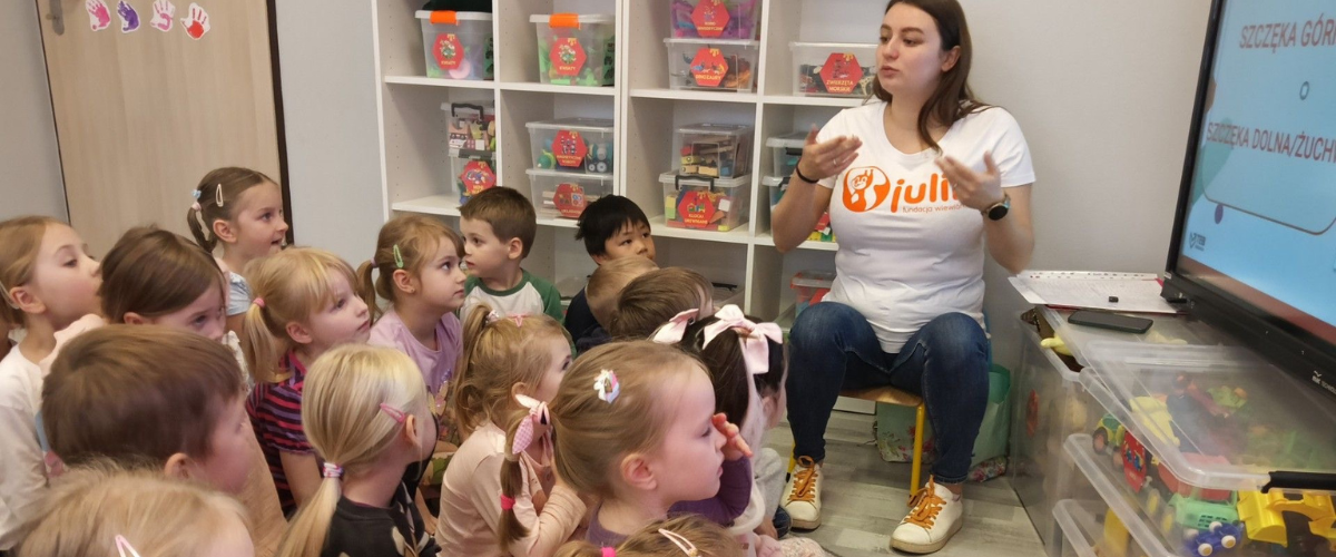 Dzisiaj odbył się kolejny odcinek cyklicznych warsztatów stomatologicznych. Maluchy dowiedziały się, między innymi, jak zbudowana jest jama ustna. Promujemy higienę jamy ustnej.
