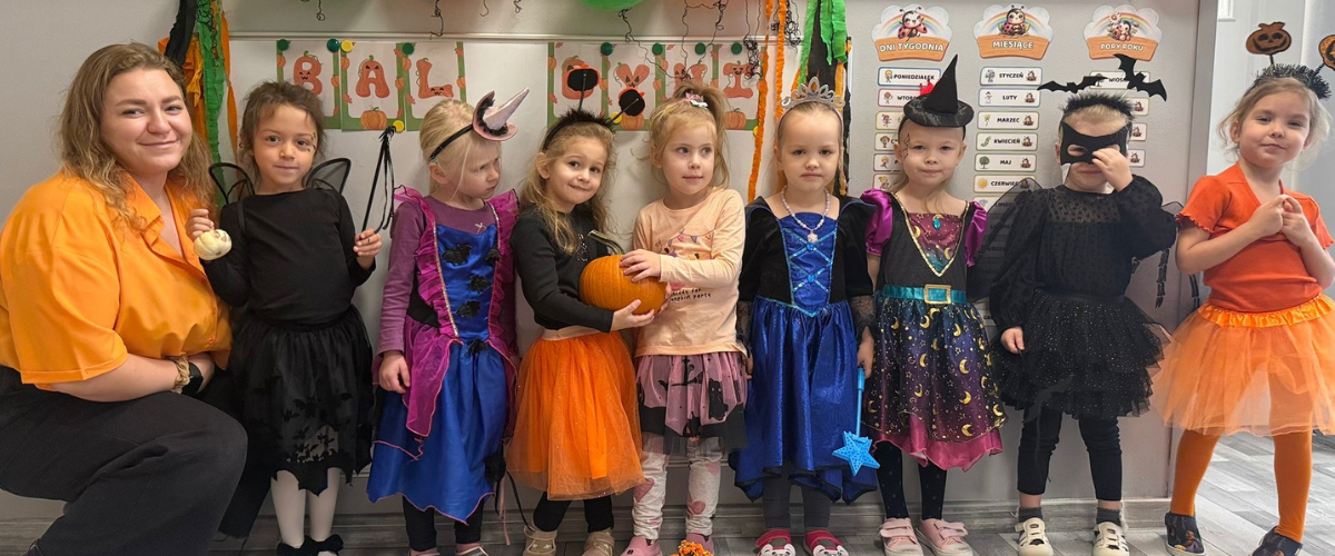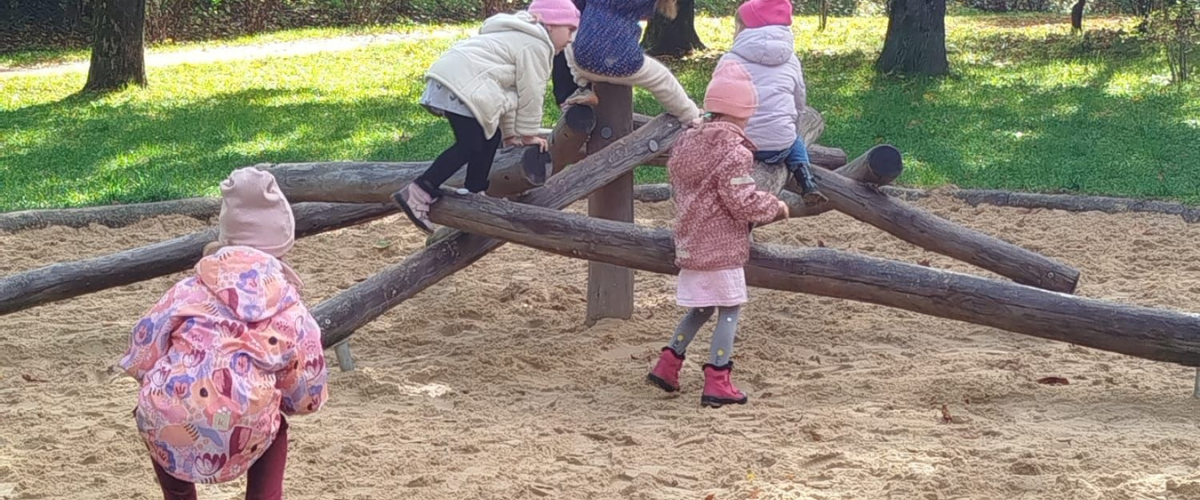 Zaczynają się już chłodne dni, ale staramy się spędzać dużo czasu na spacerach i zabawach poza przedszkolem na świeżym powietrzu.