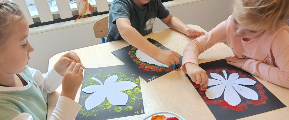 W jesiennej atmosferze tworzymy w różnych technikach. Z pomocą przychodzą nam liście , kasztany i gałązki .