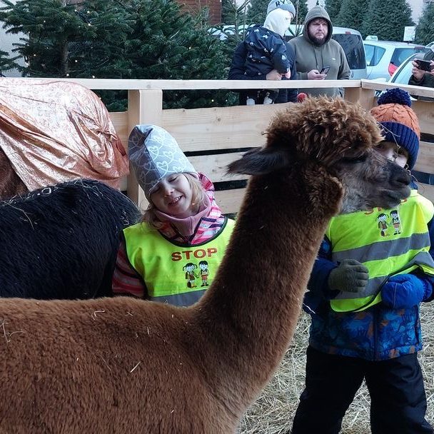 gru282023Wydarzenia Dziś najstarsza grupa odwiedziła żywą szopkę na ulicy Bociana 8. Przedszkolaki wsparły fundację Anny Dymnej i bezpośrednio karmiły żywe alpaki, kozy, i osła. Jechaliśmy tramwajem, co wzbudziło wielki zachwyt .