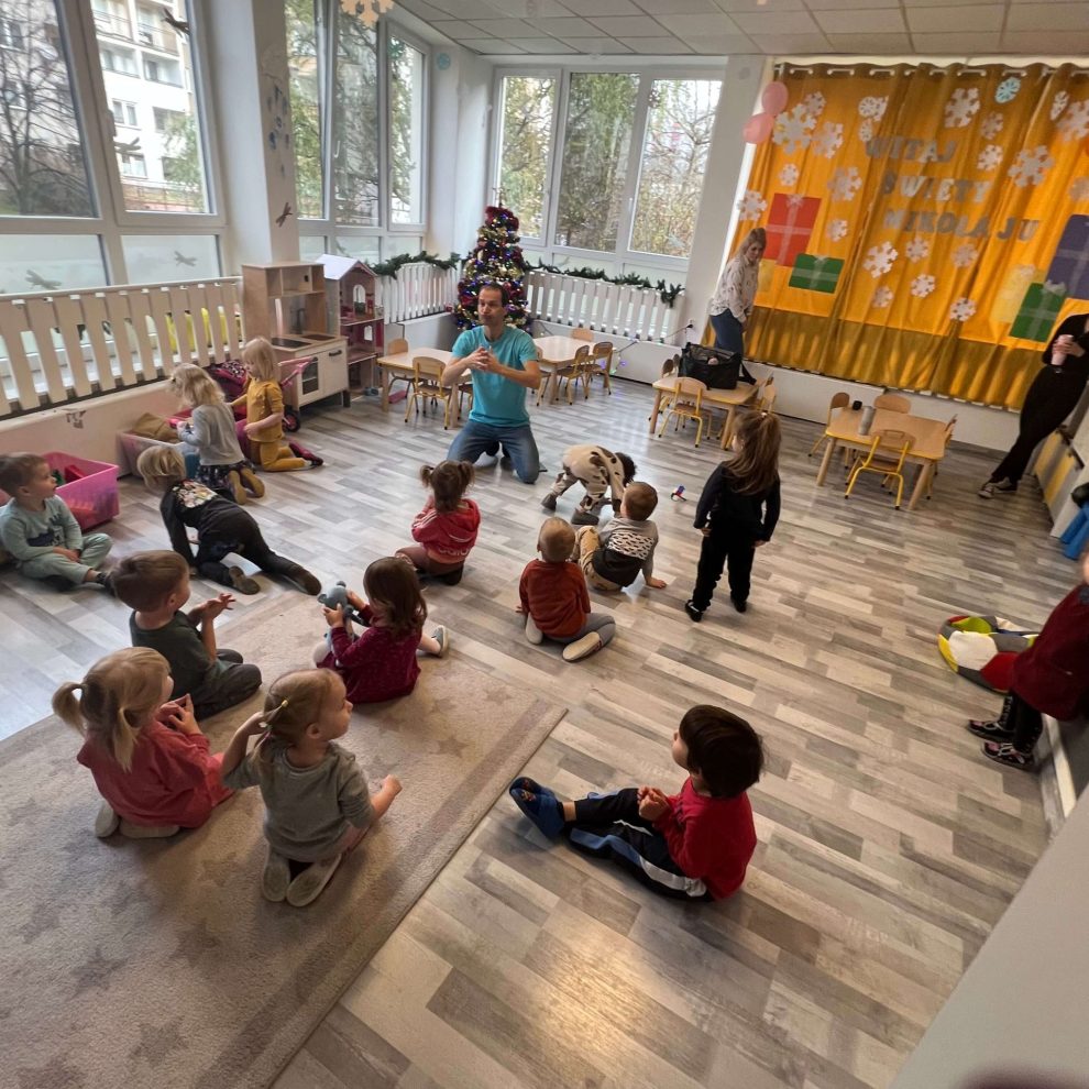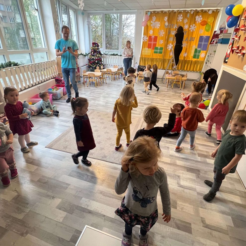Dziś zajęcia taneczne zdominowane przez wielkie emocje oczekiwania na Św. Mikołaja. Piosenki świąteczne słychać w całym przedszkolu.